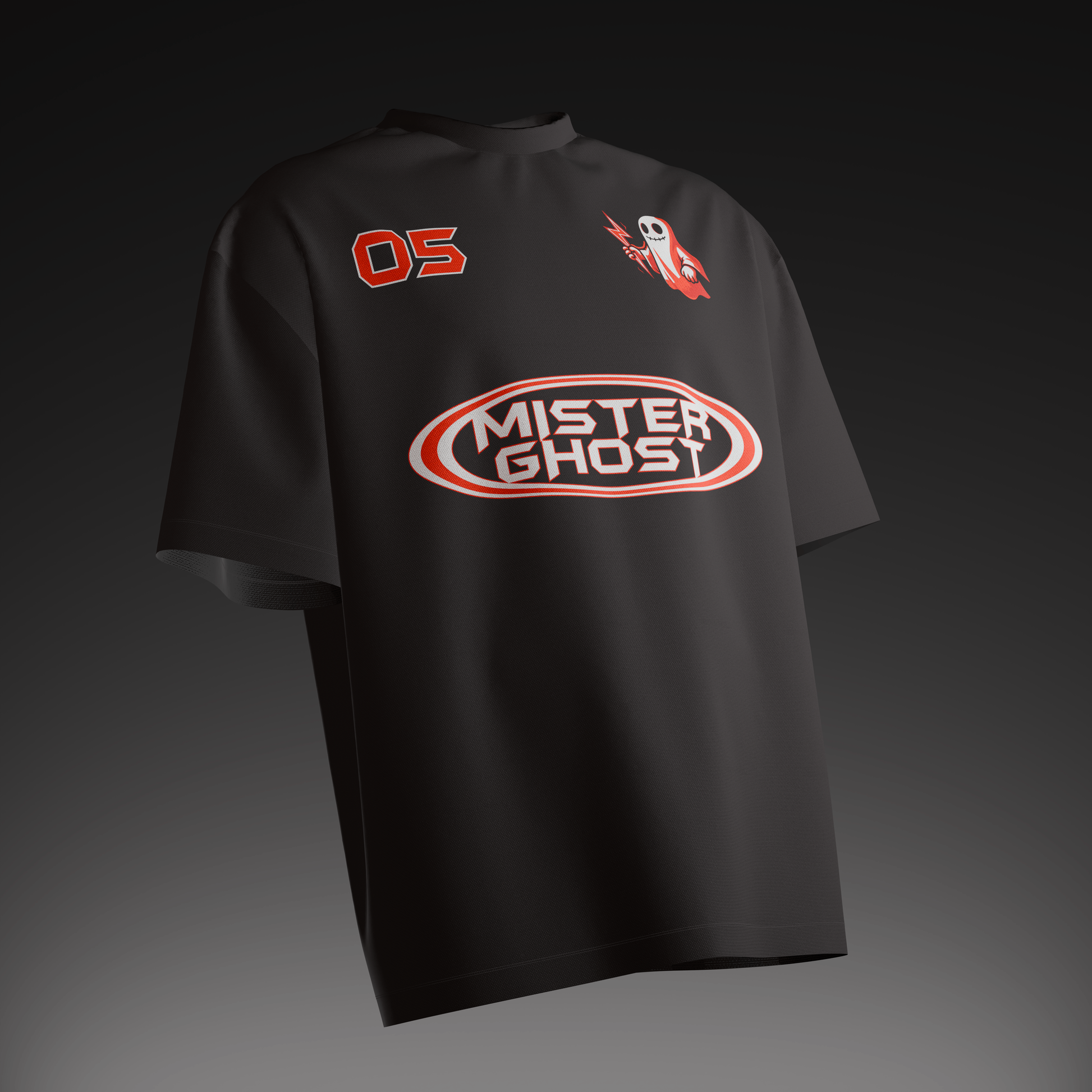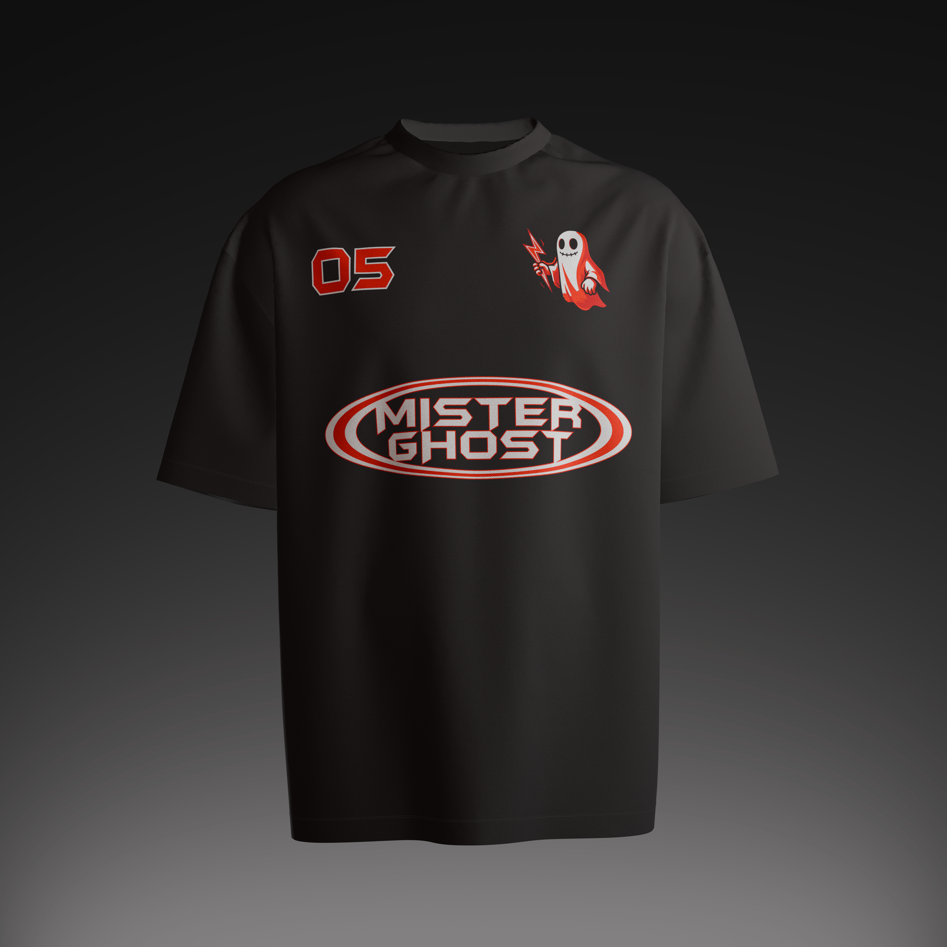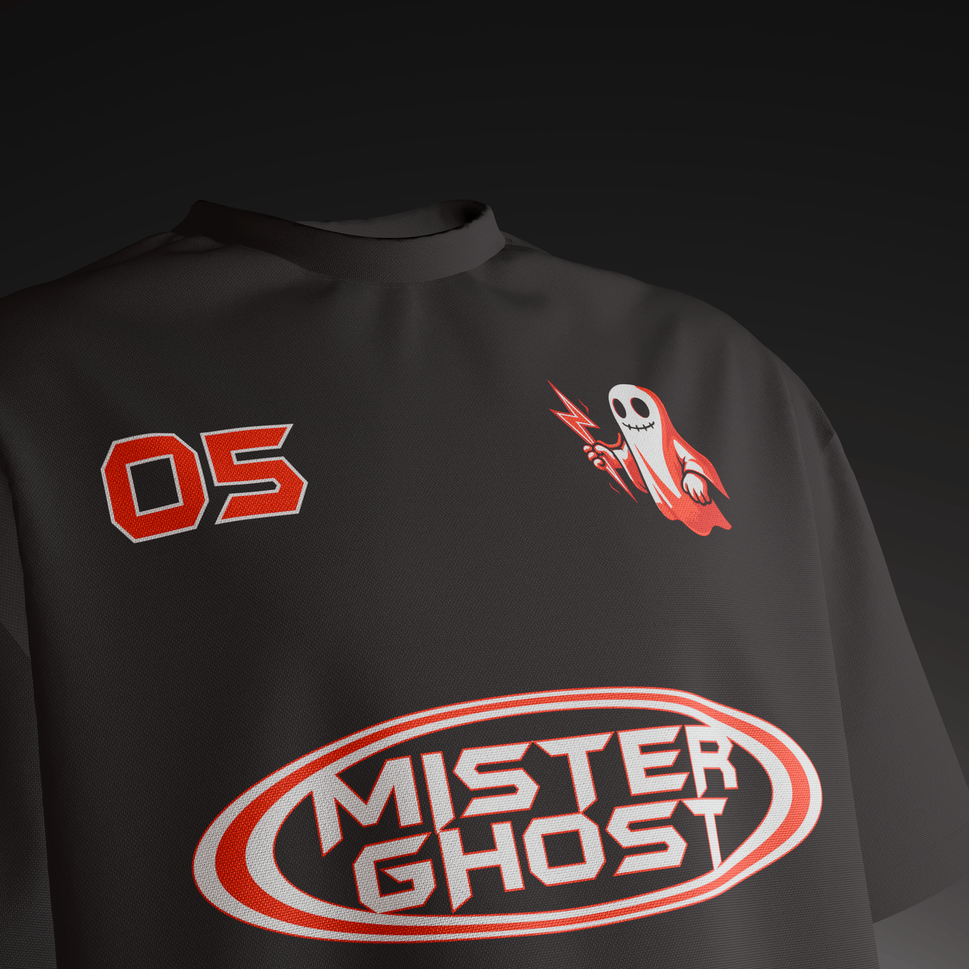 • Front: Signature ghost logo with lightning ⚡ + “05” chest print